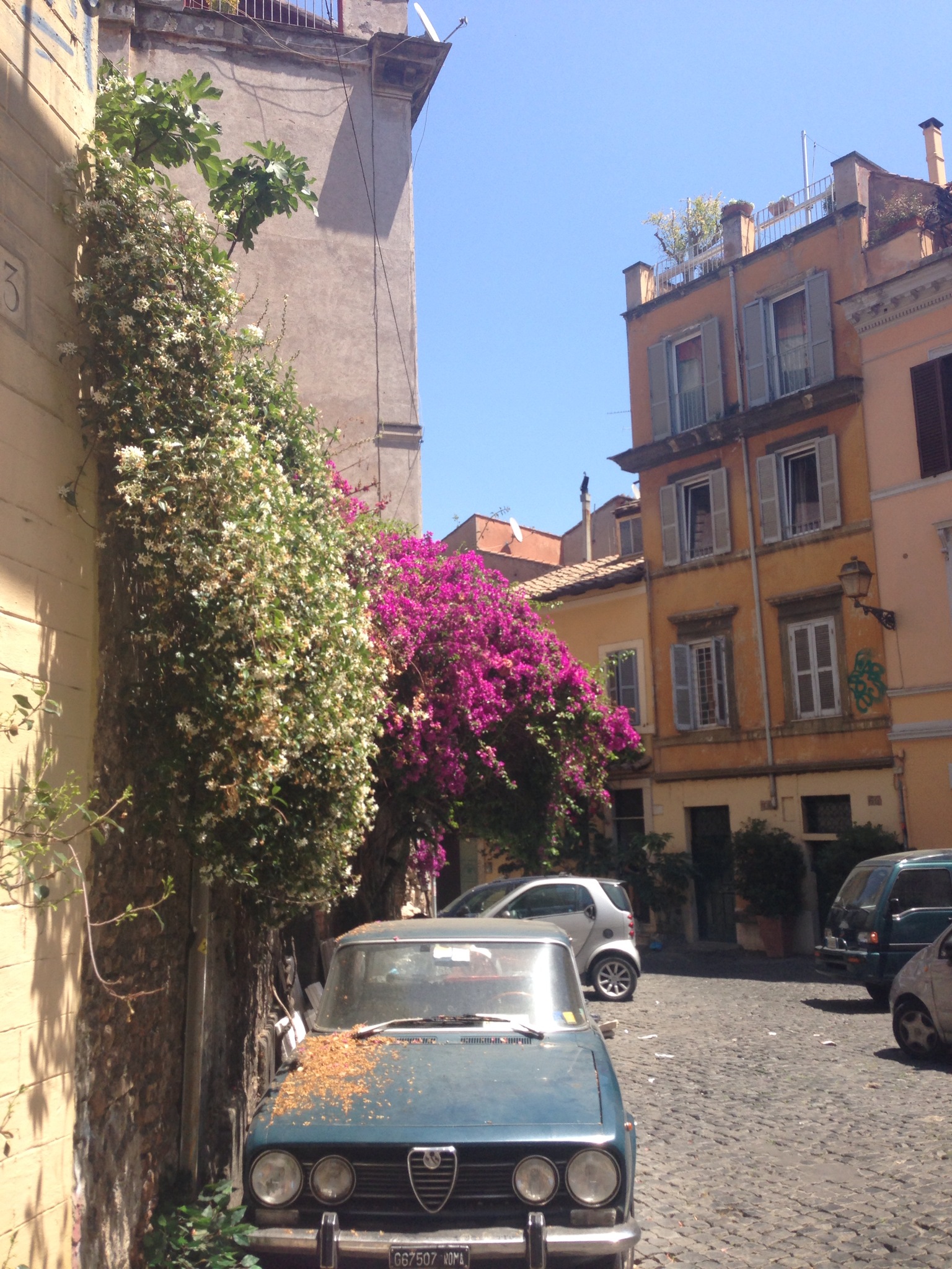 Trasteveressa on jotain valtavan liikuttavaa. Kapeat kujat, köynnöskasvien loisto, pienet baarit ja ravintolat, joiden henkilökunta on lähes poikkeuksetta mukavaa & ystävällistä väkeä.