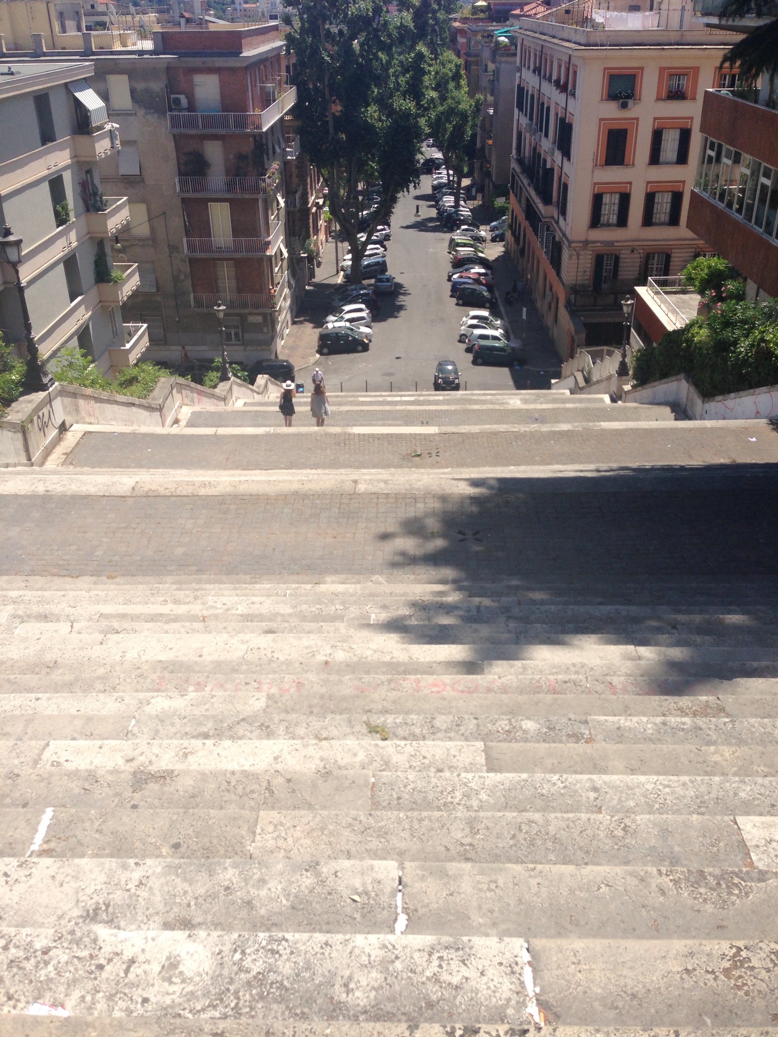 Sen lisäksi, että Trasteveressa voi vaeltaa päämäärättömästi baarista toiseen, siellä saa myös hien pintaan vaikka näitä portaita kapuamalla. Viale Glorioson päässä olevien portaiden yläpäästä voi kiivetä aina kukkulan laelle saakka katsomaan huimia näköaloja Rooman vanhaan keskustaan.