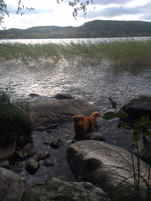 Tunnelma latistui täysin siinä vaiheessa, kun kallioilta laskeuduttuamme tolleri päätti mennä uimasilleen haisevaan mutasuohon, ja sen perään ryntäsivät muutkin hauvamme. Neljästä koirasta kolme saatiin kutsuttua takaisin (järkyttävän rapaisina ja pahanhajuisina), mutta Nappi jäi vastarannalle. Se yritti uida vielä yhden pätkän seuratessaan meitä hetteikön myötäisesti, ja pienen koiran voimat vaikuttivat vähenevän silmissä. Voin kertoa, että tilanne oli ihan kamala.