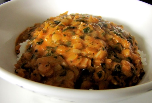 Kermainen linssi-pinaattikastike (3-4 hlölle)
