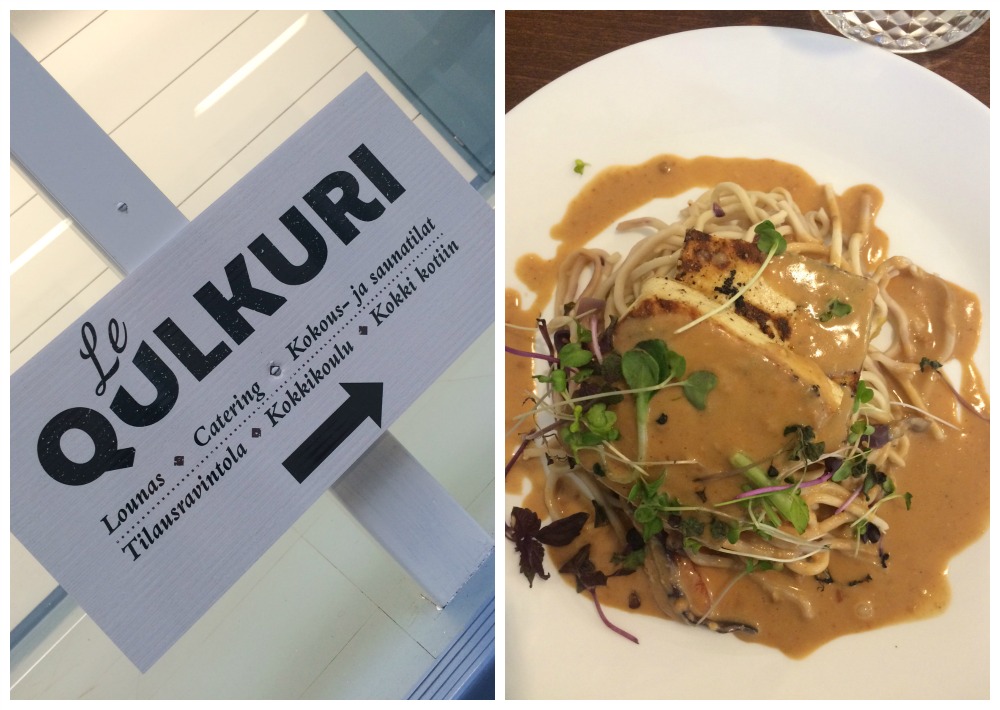 Kävimme katsomassa Vesangantie 5:ssa vapaina olevia liiketiloja ja suorastaan ällistyin, kun 2. kerroksesta löytyi näin laadukas lounaspaikka. Qulkurin listalla on päivittäin yksi liha- ja yksi vegeruoka, joskus jopa vegaaninen. Alkusalaattia syödessä ei voinut kuvitella olevansa Jyväskylässä & lounaalla. Lautasella pöytiin tarjottuna pääruokana tänään sataytofua. Bingo!