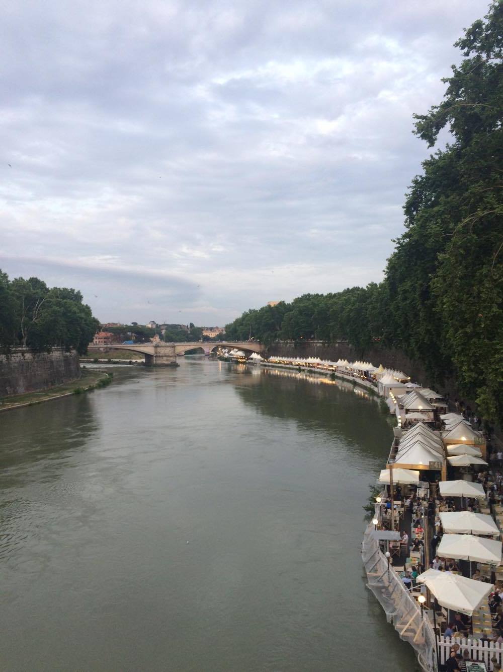Iltakävelimme rantafestareille Tiberin äärelle ja nappasimme 10 euron buffet-setin. Isäntä ei aplodeerannut aterialle, johon seisovan pöydän antimien lisäksi kuului yksi aikuistenjuoma, mutta mielestäni pelkästään tulisten porkkana-falafelien takia summa kannatti maksaa.