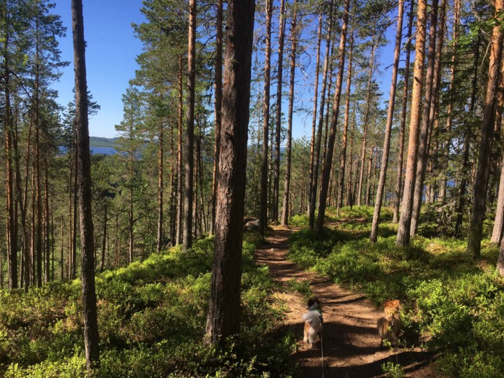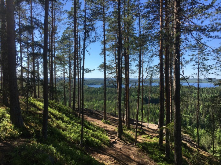 Ylös päästyämme tuuli kävi vahvemmaksi ja itikat olivat enää muisto. Ällistelin ihmeissäni maisemaa – eihän tämä voinut olla totta; moinen aarre vain puolen tunnin ajomatkan päässä kotoa. Pyörimme polun pylpyrän ympäri ja palasimme näköalakalliolle ottamaan kuvia. Oli kovin hiljaista ja saimme nauttia maisemasta ihan keskenämme.